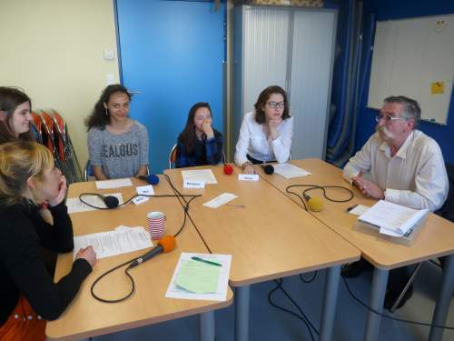 Les jeunes hospitalisées en Hôpital De Jour ados (Margaux, Maï, Elena et Soizic) du CHU de Nantes reçoivent Hervé Thobie, éducateur canin.