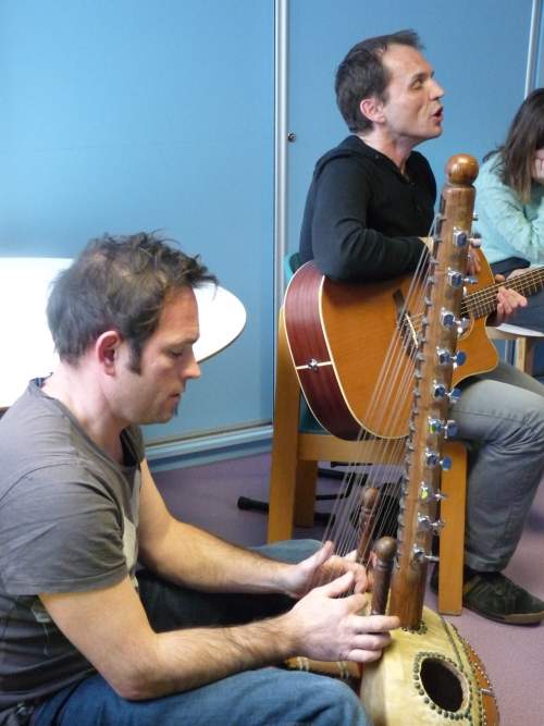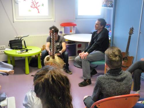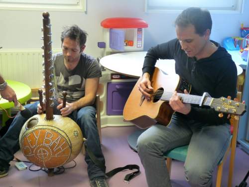 Comme il se définit, le groupe « Maliblues, c’est 31 cordes et 8 peaux qui rendent hommage à la musique Mandingue. Kora, guitare, basse, percus et batterie reprennent les thèmes anciens des Griots d’Afrique de l’Ouest. Deux des cinq membres du groupe, Nicolas Corbard (chant, guitare) et Sébastien Delaunay (Kora) sont les invités des jeunes hospitalisés au CHU de Nantes.
